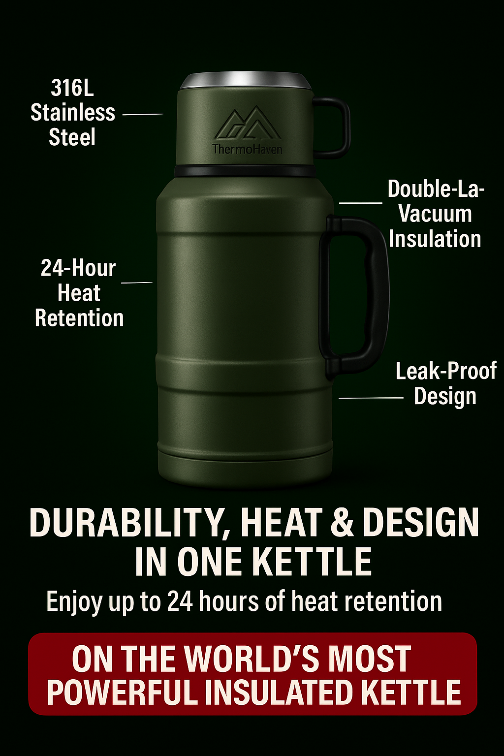 Built with a copper-plated inner tank and multi-layer stainless steel shell, ThermoHaven™ locks in temperature for hours — keeping every sip just as hot or cold as you want.